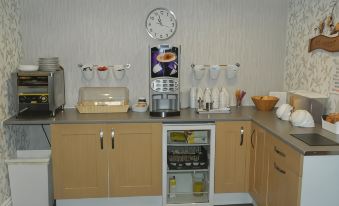 Very clean & warm hotel, room & bathroom were spotless, & warm plenty of tea,coffee, sugar & milk. Plenty of towels. Comfy bed,but hard pillows. Frosted glass in bedroom, not sure why so couldn't see out. Couldn't get WiFi to connect despite having password etc. Was told in information I received after booking no cooked breakfast but option of Continental for £15 per person!!. So we went to the Wetherspoons a 10 minute walk away, had a lovely meal night before & great cooked breakfast. Would advise getting to hotel a few hours before booking in time as free parking very limited. However despite these minor negatives for the price of our stay it was excellent value for money.