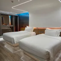 Hotellissa on oma lämmitetty infinity-allas 🏊♀️ , 24h-kuntosali ja sky-baari. Jokaisessa huoneessa on älykäs koti, erittäin mukavat vuodevaatteet ja Marshall-kaiuttimet. Ostokset, ruokailu ja vapaa-aika ovat kaikki saatavilla yhdestä paikasta!
