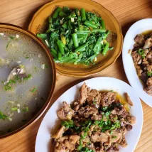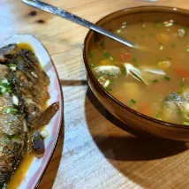 很衞生 一次性用品齊全 做的飯菜也好吃 選擇了土雞、竹筍臘肉和野菜 免費品嚐了自製的糯米酒 離看日出的6號觀景台走路15分鐘 挺好的