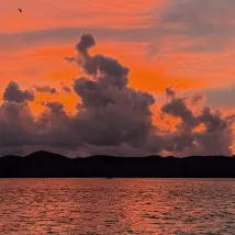 - Happy hour and sunset and seeing the fruit bats flying to the other island.