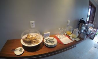 Cama muito confortável, café da manhã excelente e quarto limpo todos os dias.