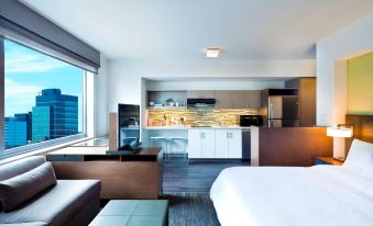 The best aspect of this hotel selection is its location, just few minutes from NYC World Train Center bounded PATH station, you can reach the city in 20 minutes, they also provides shuttle service to Newark Airport; while the facility is modern and decent size room comes with a small kitchen. The breakfast selection is just so-so