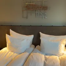 Koko huone on sisustettu ja huonekalut näyttävät erittäin tyylikkäältä ja korkealaatuiselta. Vuodevaatteet ovat erittäin mukavia ja tyynyt ja peitot ovat erittäin mukavia, varsinkaan en ole koskaan käyttänyt niin mukavaa peittoa.