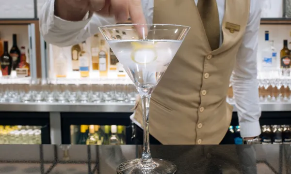 In hotel terminal so very handy for early flights. Expensive bar, paid 21 quid for one glass of wine