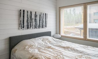 Tunturinlaita D4 is an elegant alpine style apartment in the center of Levi and in the middle of nature. The apartment on the second floor is a great choice for both couples and families. From the balcony of the apartment you can admire the beautiful nature of Lapland, skiers passing by or skiers cooling off on the front slope.