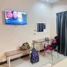 You get what you paid Room is spacious No soap or shampoo No elevator