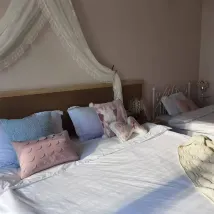 Very beautiful room, everything was cleaned and there were a lot of amenities, such as slippers, towels, toothbrushes, etc. There was a lot of space, including a bathroom with a shower and washing machine, with detergent provided. In the living room/extra bedroom, there was a desk with a calligraphy kit and a small functional kitchen. In the other room there was even a small japanese inspired space with a tea set and some tea leaves. The owners provided us with some sweet treats which was very nice. The location is not very accurate but the lady from the hotel came to pick us up at the street and we were very impressed and satisfied with this. Overall I recommend booking this room for a Nanjing trip, we will definitely come back someday ☺️