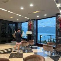 Had a great stay. Lake view is beautiful. Room with 2 double bed makes less walking space but stayed for 1 night so no luggage. Read review on slippery toilet floor but they do provide floor mat and a fixed handle, still have to be careful as their water is strong that is why whole toilet will be wet after shower. Room table has a filtered water on table top so is convenient to take water but took up some space. Review wrote about insects, yes but as long as we do not open the sliding door at night then is fine cause it has netting on the outside door. Staffs are helpful too, when i enquire about the tickets they did explain on where to go and is cheaper to purchase from the hotel. Hotel near the wharf and bus station so is a good location.
