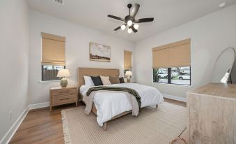Discover this stunning 4-bedroom, 3-bathroom home located in the vibrant heart of downtown New Braunfels. Perfectly situated for visitors seeking a blend of comfort, style, and convenience, this home offers a spacious and modern interior with all the amenities needed for a relaxing stay. The open-concept living area features a fully equipped kitchen, cozy living room, and dining space, making it ideal for families or groups. Each of the four bedrooms is beautifully decorated and designed for ultimate relaxation. The three bathrooms offer plenty of space and modern fixtures. Outside, enjoy a private backyard, perfect for unwinding after a day of exploring the local attractions. Whether you're strolling down to the historic Gruene Hall, shopping at local boutiques, or enjoying the nearby rivers, this home offers the perfect base for all your New Braunfels adventures. Book your stay today and experience the charm of this downtown gem!About pets:No pets allowed.About children:Children allowed: ages 0-17.About smoking:Smoking is not permitted.About events:Events allowed: family gatherings, birthday parties, weddings.Maximum event attendees: 10.