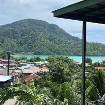 Hotelli on maisemahotelli, mikä on sen ominaispiirre.Oli se sitten ravintolassa tai huoneen parvekkeella, näet virkistävän merinäkymän, mutta hinta, jonka maksat tästä, on se, että sinun täytyy kiivetä portaita. olen nähnyt sen arvosteluissa, mutta en odottanut pelkääväni niin korkeita portaita. Jos etsit kauniita maisemia, suosittelen jäämään. Jos matkustat vanhusten kanssa, en suosittele jäämään Se tulee olemaan erittäin epämukavaa, varsinkin kun etäisyys laiturista hotelliin on lähes 8-10 minuutin kävelymatka. , Thaimaassa on erittäin kuuma, mutta onneksi rannalle ei ole niin pitkä matka. Johtaja klo. vastaanotto on erittäin kohtelias ja ystävällinen. Suosittelen vieraille, jotka haluavat yöpyä hotelleissa. Tämä on paras valinta.