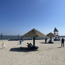 中秋節來的,來的時候城堡酒店説給我們升級到威尼斯酒店,過去以後又從園景房升級到海景房,整體體驗很不錯,威尼斯酒店樓下就是沙灘,小朋友玩耍很方便,晚上也看到了海上生明月,以及門口的煙花秀,酒店環境整體都不錯,比較大,也乾淨。