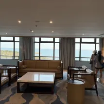 酒店真超預期,性價比太高了。管家慧慧提早一天就加了微信,注意事項,遊玩時間和路線全都詳細發了過來,試着問有沒有小童床圍,秒回可以,心安了很多。辦理入住時前台帥哥直接給升級了海景房,正好中秋節🎑,管家慧慧還安排了一份月餅🥮禮盒,剛入住就雙重驚喜,我們對此次行程更充滿期待了。房間個人覺得大小夠用了,設施也很齊全,乾淨整潔,沒有異味,還提供小朋友的浴袍,最重要的是提供的床圍我非常滿意。最後退房,管家慧慧又貼心幫我們延遲到下午2點,還給兩個寶貝送了小禮物,小朋友很開心,總體這次的行程很滿意,也很感謝慧慧熱情周到的服務。