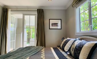 4 makuuhuonetta: 2 yhden hengen vuodetta 2 queen-parivuoteet ja 1 king-parivuode