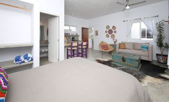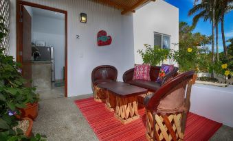 Peace amid the palms at La Isla Bonita Guesthouse. A nice spacious bungalow decorated in colorful boho-chic style and equipped with the finest amenities and artwork from the local indigenous tradition and culture. From the big sliding glass doors that lead out a private patio the space gets a lot of light. Located in the tranquil neighborhood known as Gringo Hill, where many expats live, you are a short walk to the beach in a super exclusive and quite neighborhood. A truly stylish experience.About pets:No pets allowed.About checkOut:Check out before 11:00 AM.About children:Children allowed: ages 0-17.About checkIn:Check in after 4:00 PM.About smoking:Smoking is not permitted.About minBookingAge:Minimum age to rent: 18.About events:No events allowed.