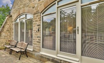 Pickering: Apartment block. Private: garden, parking (for 1 cars). Supermarket 2 km. "Victory Mill - Apartment Five", 2-room apartment 60 m2, on the ground floor. Object suitable for 2 adults. Living room. 1 room with 1 double bed. Kitchen (oven, toaster, kettle, microwave, freezer). Shower/WC. Terrace. View of the garden and the river. Facilities: washing machine. Internet (WiFi, free). Please note: non-smokers only. 2 pets/ dogs allowed. Smoke alarm.