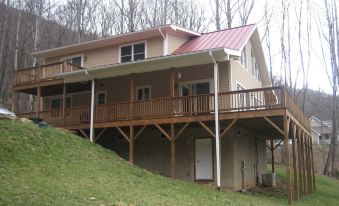 This mountain home features hardwood floors, a 21' ceiling, central AC and Heat, Gas Fireplace and over 1,900 square feet of living area. Situated minutes from downtown Waynesville, NC we are located in the heart of mountain country. The property features 2 brooks that run down either side of the house and open wooded views with paved road access right to the front door. Gas Fireplace and Covered Porches. Balcony off Master Bedroom. Bring your laptop, we have high speed internet access to keep you in touch with family, friends or the office! Internet TV uses a Roku player (Guest Access) and requires your own sign-in or account.