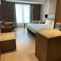 There was one guy that spoke English with glasses he was super nice he really made us feel good. The rooms are super great with a nice bathtub and mini bar! The restaurant was so good western buffet breakfast and dinner I really loved the buffet it’s the best part of the hotel! The pool area is good to chill the life guard was super handsome and sweet to us! The only part that was disappointing is the young girl working at the info desk at the gym and pool area she was so rude and she just gave me a very dirty look every time I went to the gym there was another girl working there at spoke a little English with glasses that was really nice towards us!! Otherwise it’s a really nice hotel I was super happy most of the time! FYI if you arrive late at the hotel check in might take long if your a foreigner..