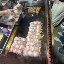 5min to the right is the early morning market where you find lots of local street food.15-20min to the right is the famous lighting walls opposite the university