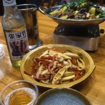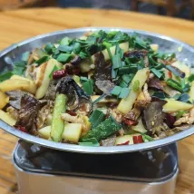 Приехали голодными, хозяин быстро сварил нам лапшу. Вечером хозяин помог выстроить завтрашний маршрут по парку и купил нам входные билеты, билеты на лифт и канатную дорогу. Утром он на своей машине отвез до входа. Весь день были в парке 😍 вечером в отеле нам приготовили вкусный ужин, покушали за 90 юаней 👍🏻